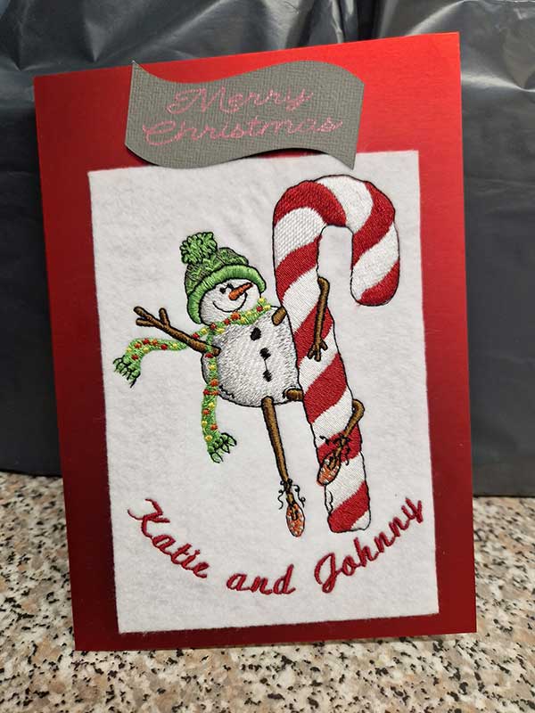 Embroidery Design: Snowman Wrapped Candy Cane